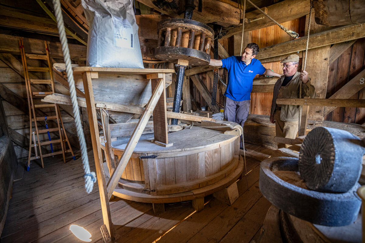 De molenaars van de Fauconniersmolen geven uitleg en maaldemonstraties. En tegen de namiddag zijn de proeverijen klaar!